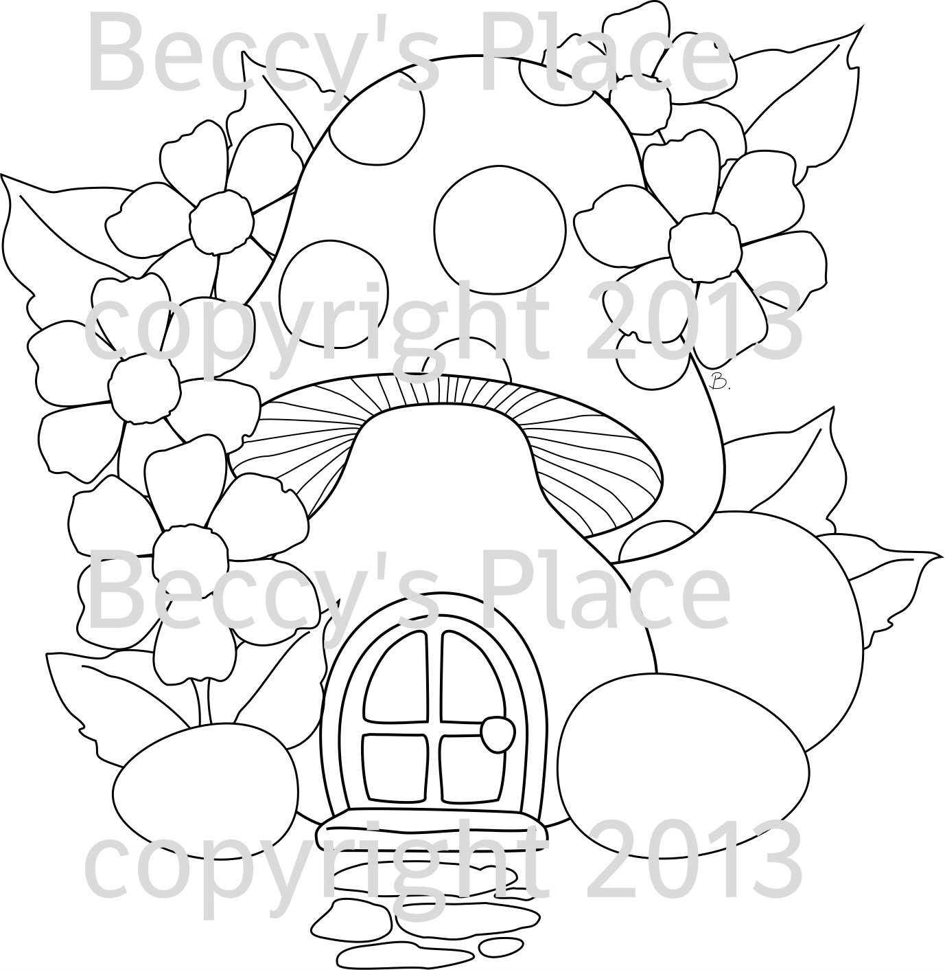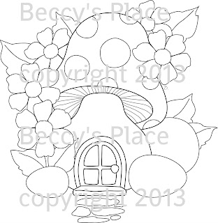 Here is a card I made using this cute free digital image for March, the Mushroom House.